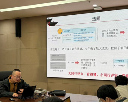 会上,张意副院长首先介绍了学校和学院近几年国家自然科学基金项目申报的整体情况。随后,重点分析了学院2025年申报项目的评审意见,针对不同类型项目高频出现的评审意见提出了应对和改进举措。并结合目前学院基金工作面临的问题和挑战,提出了实施申报流程精细化管理、建立多方专业指导体系、完善重点、人才项目培育机制等重点举措,旨在为老师基金申报工作提供全面保障和有力支持。