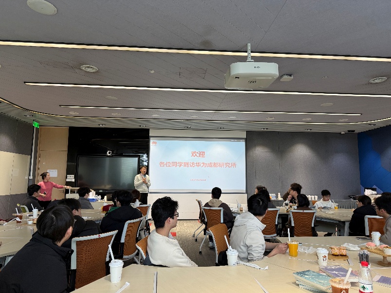 师生一行在工作人员引导下参观了华为园区,观看了成都研究所整体介绍视频,近距离感受华为的研发环境与企业文化。同时,学院教师代表与华为相关部门负责人围绕共建实习实践基地、构建协同育人机制等议题进行了深入务实的交流,初步明确了合作框架与推进路径。