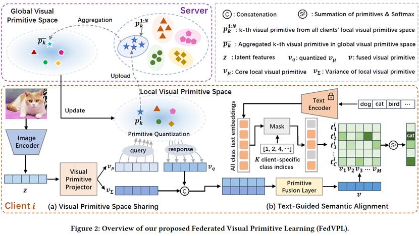 近日,我院张意教授团队在个性化联邦学习领域取得了重要进展,研究成果《Beyond Class Boundaries: Federated Visual Primitive Sharing with Text-Guided Adaptation》成功被互联网领域的国际顶级会议The Web Conference 2026 (WWW 2026)接收。我院2024级博士生黄永强为第一作者,张意教授为通信作者,合作团队包括四川大学网络空间安全学院与计算机学院,其中网络空间安全学院为该成果的第一单位。