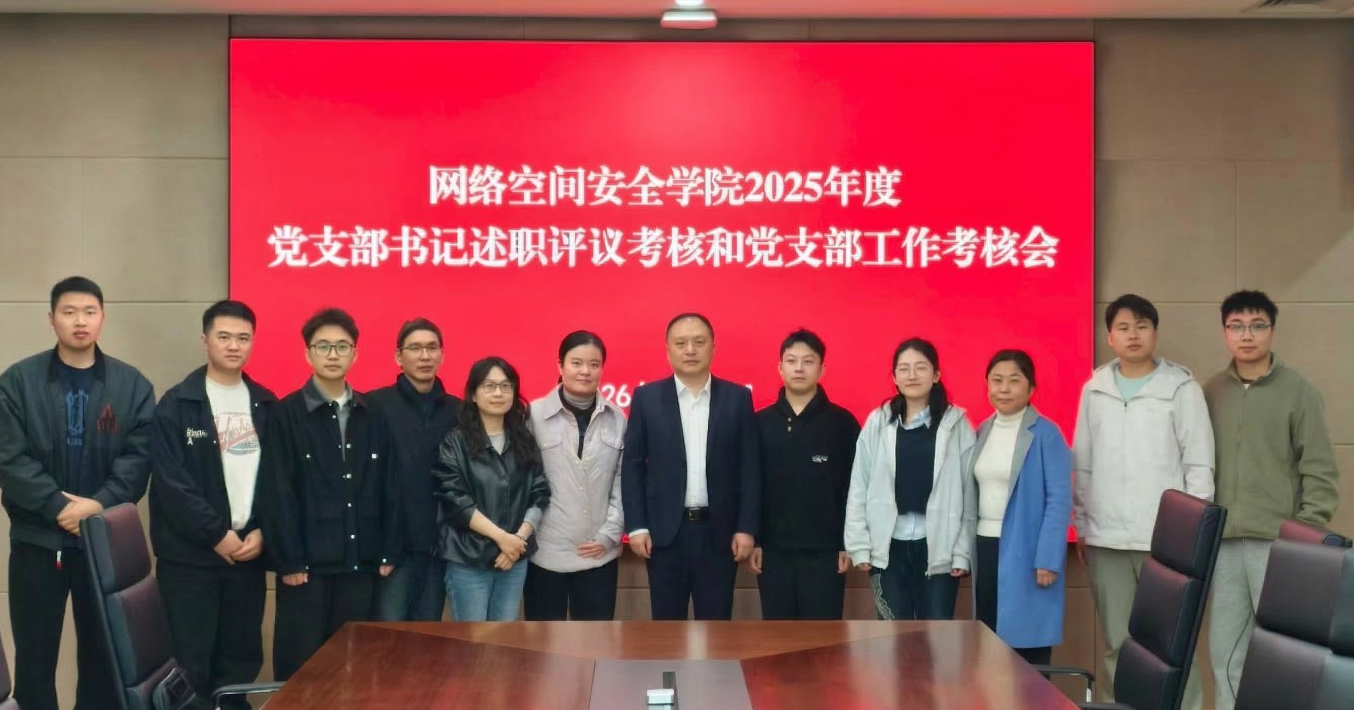 为深入贯彻落实习近平新时代中国特色社会主义思想特别是习近平总书记关于党的建设的重要思想,压紧压实党建工作责任,扎实开展“三个一流”创建活动,进一步增强党支部政治功能和组织功能,2026年3月12日上午,网络空间安全学院召开2025年度党支部书记述职评议考核和党支部工作考核会,会议由党总支书记雷印杰主持,考核评议组由党总支委员、专职组织员、师生党员代表组成。