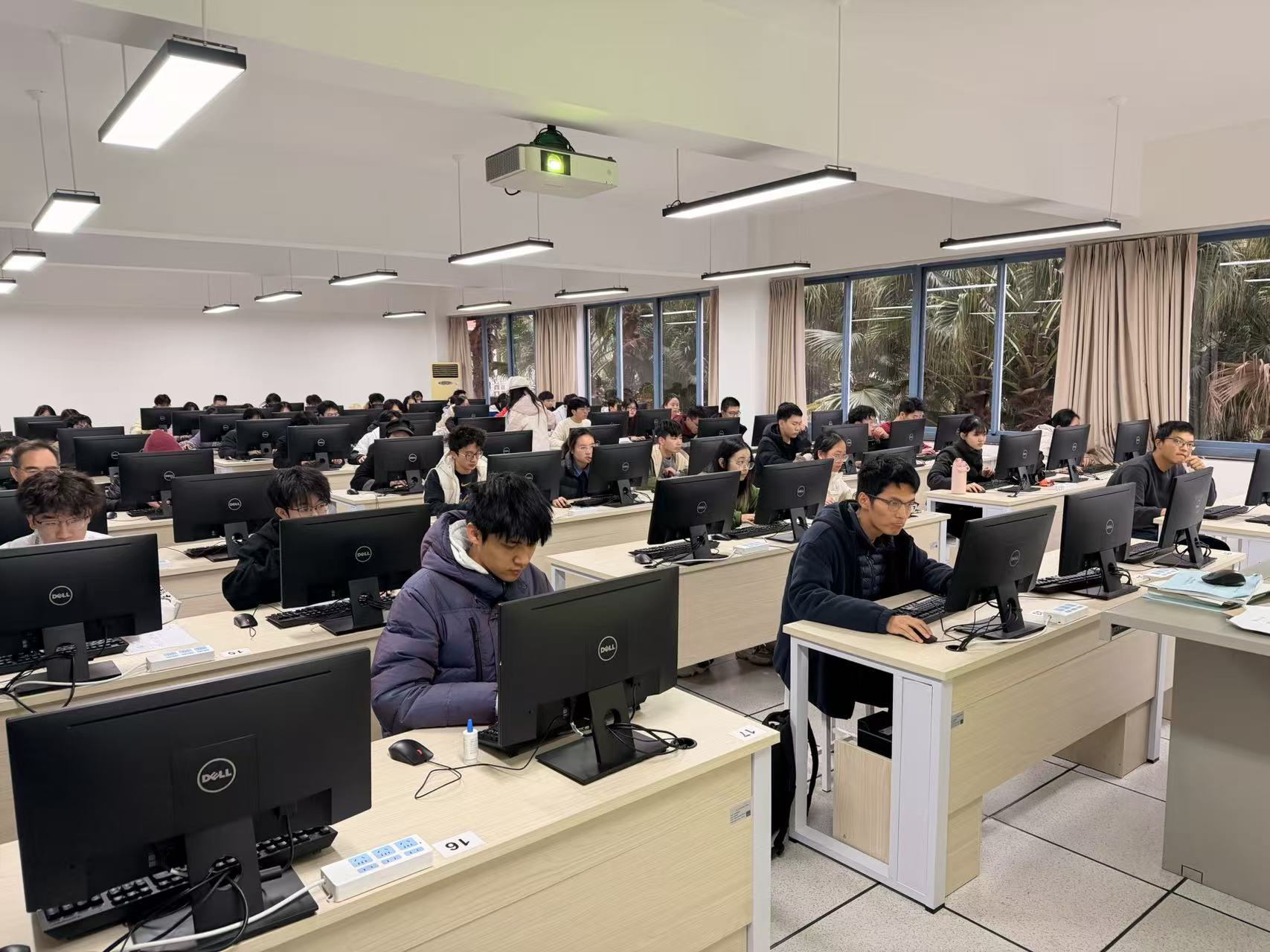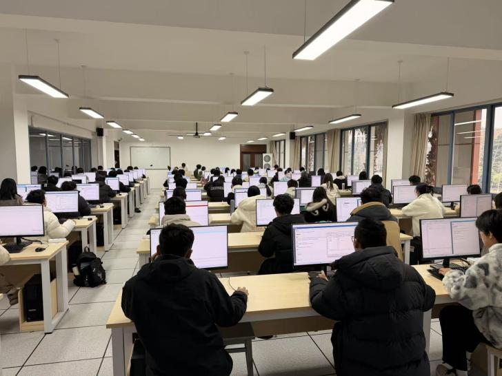 为全面检验2025级新生前半学期课程学习成果,助力学生做好期末准备,进一步巩固算法思维与代码实战能力,12月26日下午,网络空间安全学院在江安校区二基楼机房开展了2025年“乐见菁英”编程比赛12月月赛暨《程序设计基础》课程第二次月测。本次赛事延续了“竞赛 + 测评”的融合模式,共计240余名同学参与。