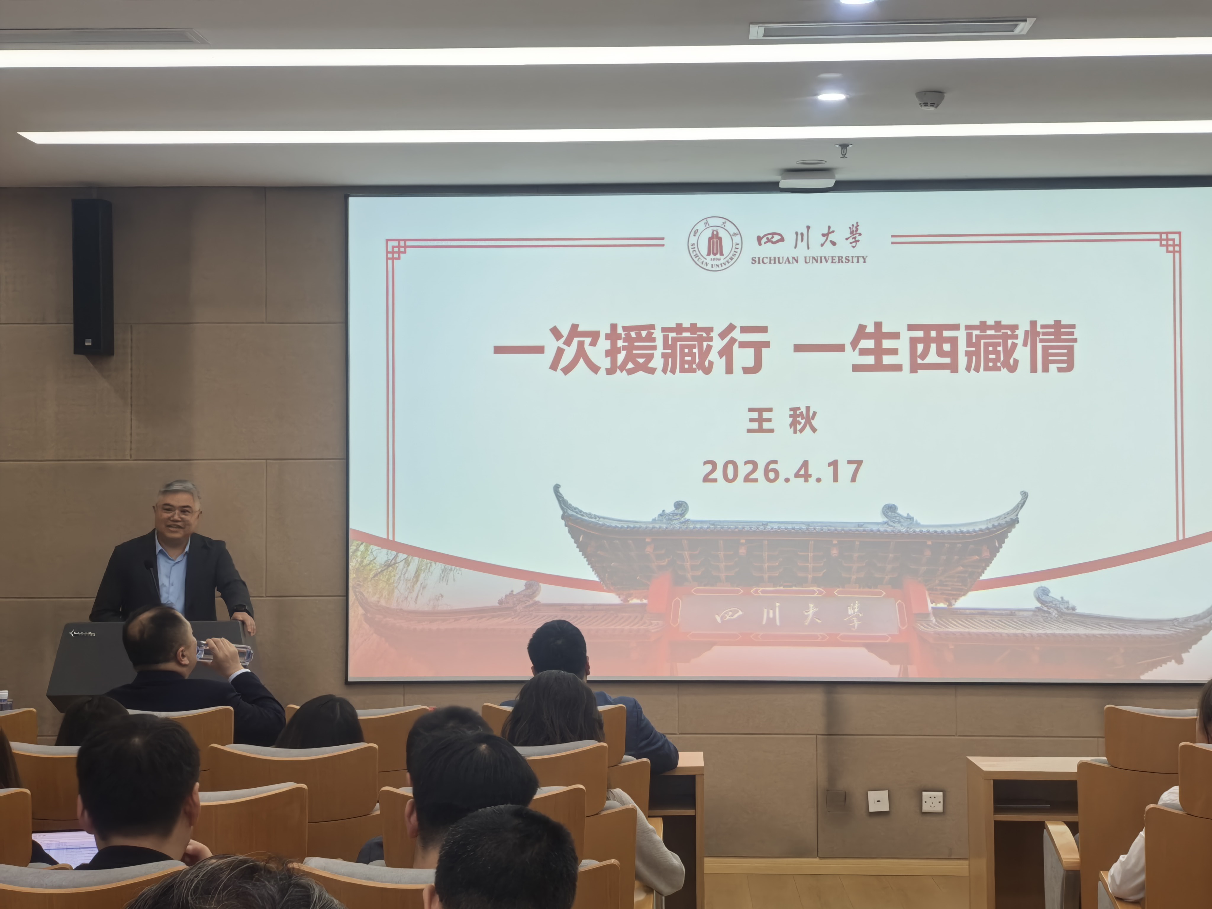 宣讲会上,王秋同志在深刻解读援藏精神后,深情回顾了他在援藏三年期间的工作与生活经历,详细描述了在面临重重挑战下如何推动西藏自治区妇产儿童医院建设取得显著进步、实现跨越式发展,分享了在援藏历程中疫情防控、小拉姆的故事、争分夺秒抢救因胎盘植入导致子宫收缩乏力发生产后大出血的产妇以及关爱孤独症小孩等四个难忘的经历,表示并号召传援藏之情,以“功成不必在我、功成必定有我”的境界,以实干出成绩,为川大的美好明天,为实现中华民族伟大复兴的中国梦,贡献自己全部的力量。