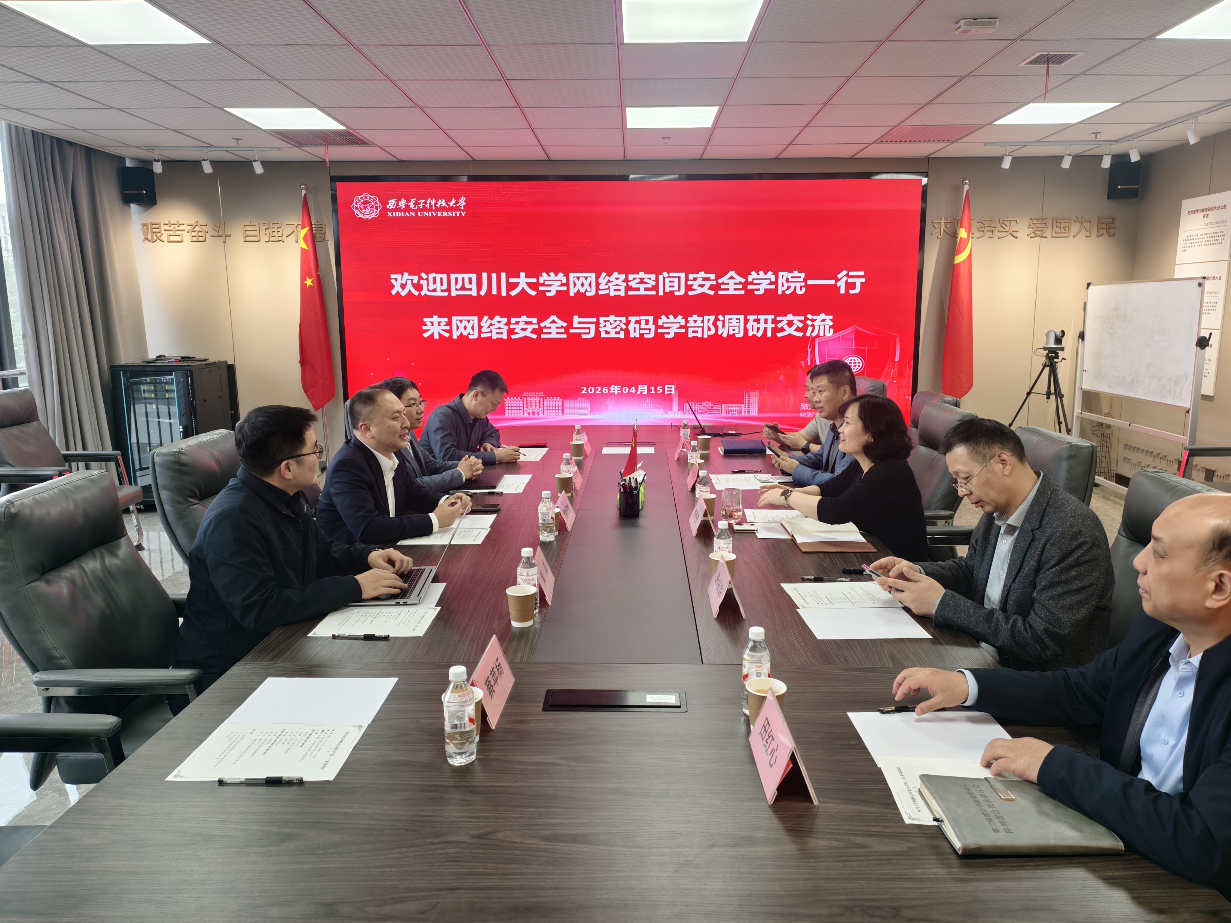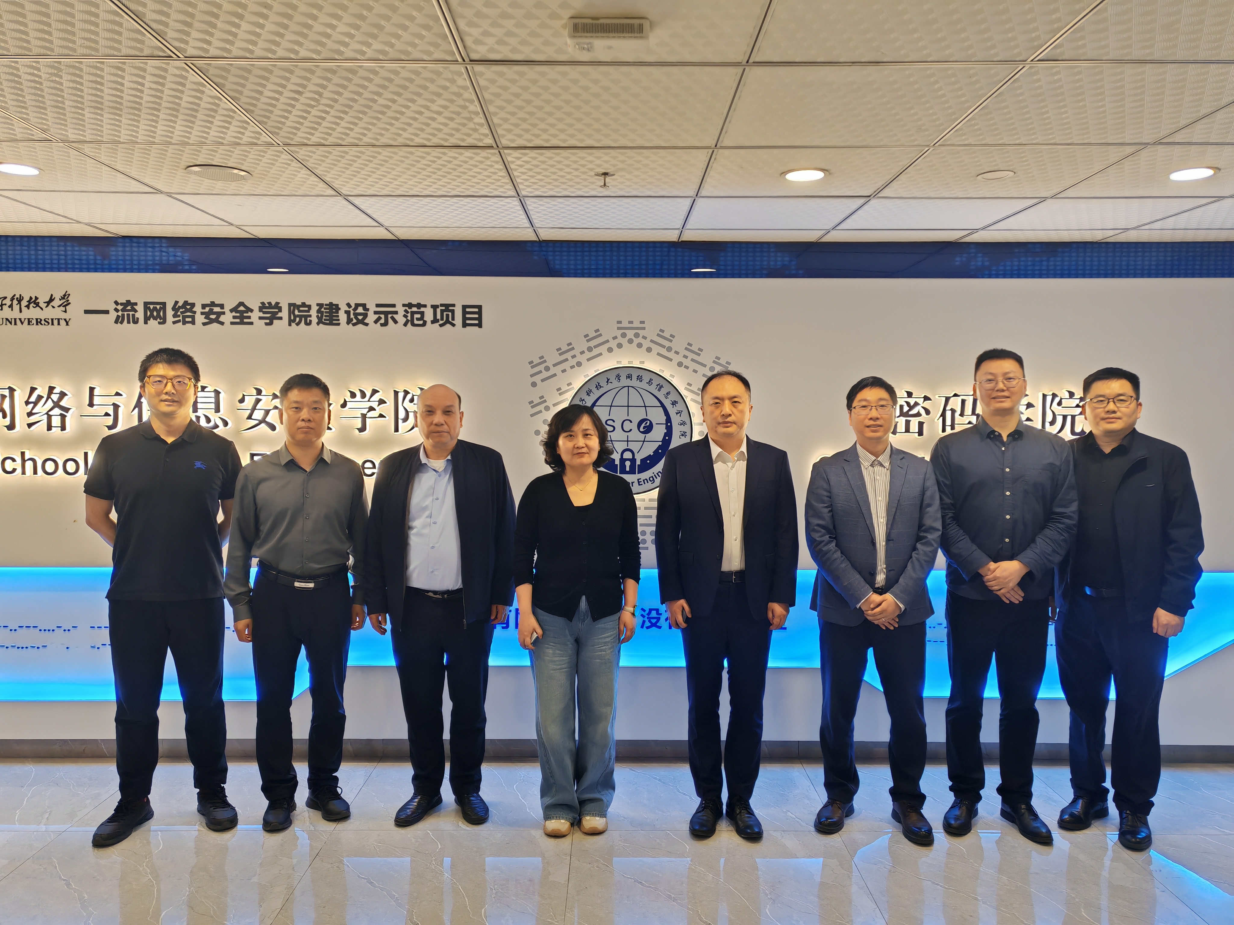 为推动学院人才培养、师资建设、学科发展等工作提质增效,4 月 15 日,网络空间安全学院党总支书记雷印杰带队前往西安电子科技大学网络安全与密码学部开展专题调研交流。西安电子科技大学网络安全与密码学部党委书记张美茹、网络与信息安全学院副院长李兴华、党委副书记张国良等领导参加座谈。
