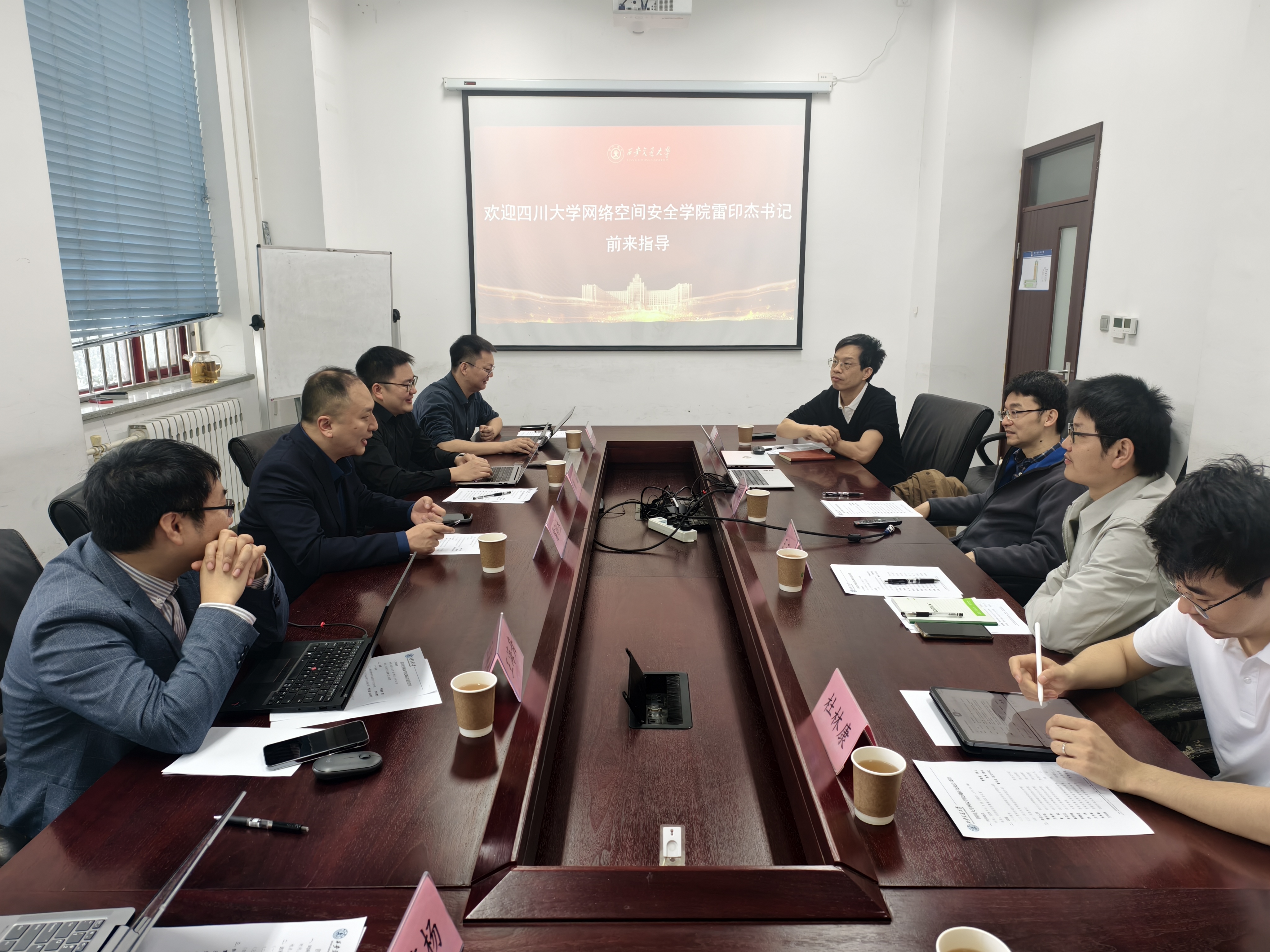 雷印杰书记代表我院对西安交大的热情接待表示衷心感谢,并全面介绍了四川大学网络空间安全学院的建设情况,希望以此次交流为契机,互学互鉴、携手共进。