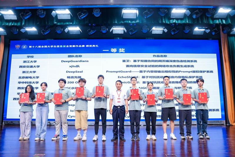 全国大学生信息安全竞赛是由教育部高等学校网络空间安全专业教学指导委员会于2008年发起并主办,全国知名高校轮流承办的一项大学生公益赛事活动。该竞赛旨在培养大学生的创新意识、团队合作精神,提高大学生的信息安全技术水平和综合设计能力,推动我国高校信息安全专业建设,促进信息安全课程体系、教学内容和方法改革,同时也为培养、选拔、推荐优秀信息安全专业人才创造条件。该赛事已连续举办18届,现已成为国内最具影响力的网络空间安全学科领域赛事。本届作品赛共有来自全国195所高校的894支团队、3209名大学生参加。总决赛最终评选出一等奖44项、二等奖66项、三等奖88项,10个单位荣获“优秀组织单位奖”。